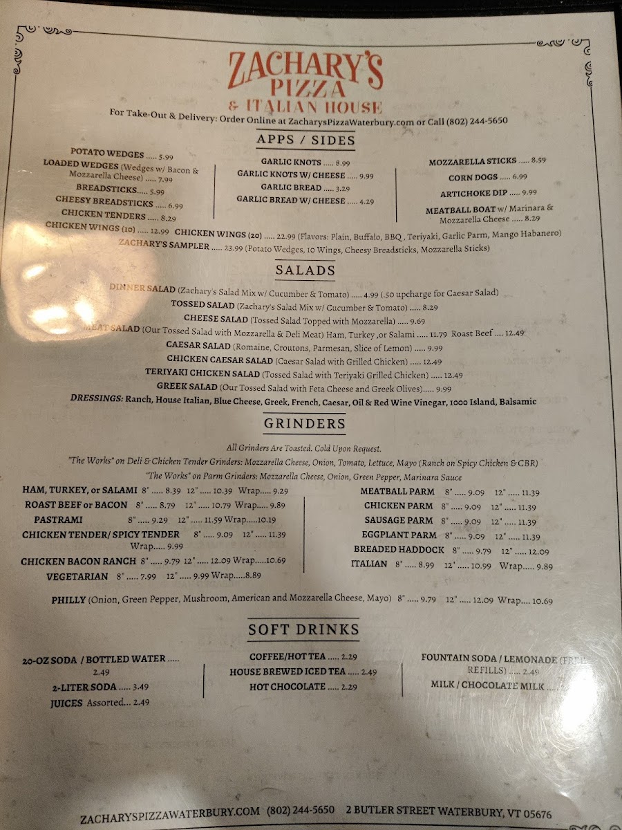 Welcome to Zachary's Pizza Waterbury, a hidden gem nestled in the charming town of Waterbury, Vermont. Located at 2 Butler St, this quaint restaurant prides itself on offering a delightful blend of Italian-American classics in a warm and friendly atmosphere. Whether you're a local or a visitor, Zachary's serves as the perfect spot for both a casual family dinner and a quick takeout meal.